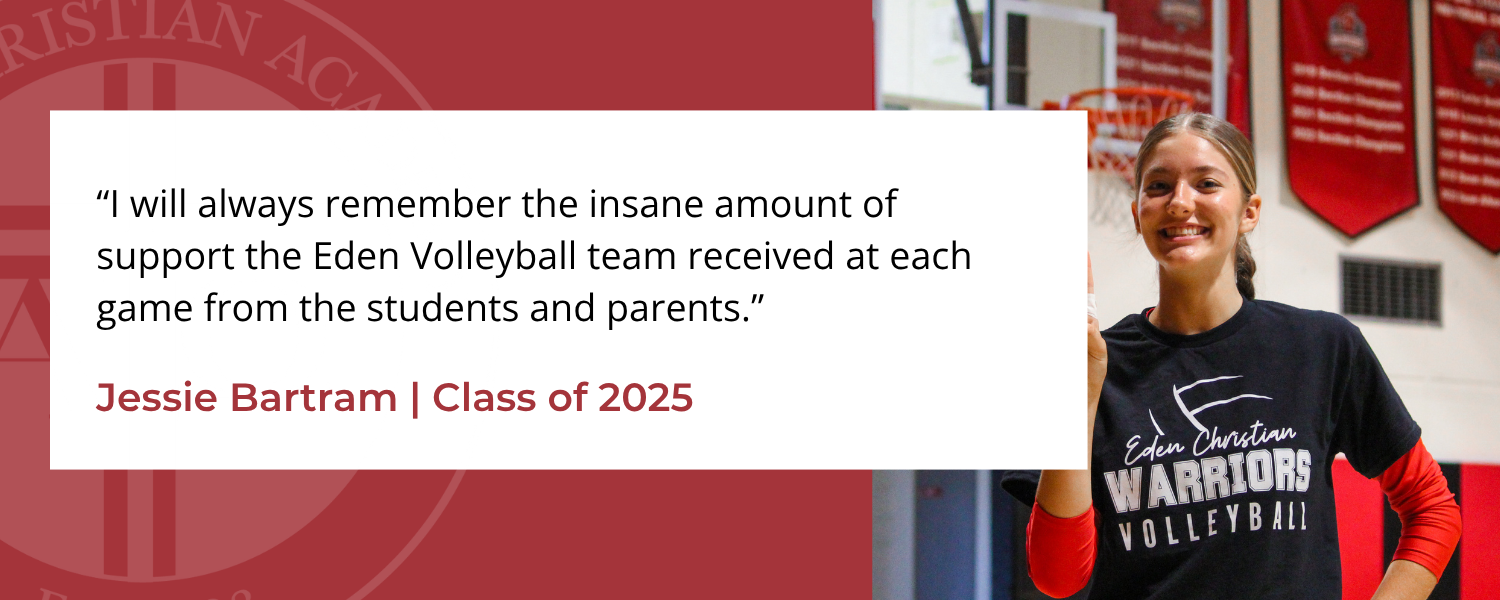 At Eden, athletics is a vital part of student formation. Through every drill, game, and season, we shape students to become leaders, teammates, and ambassadors for Christ who are ready to persevere with purpose and reflect the heart of Christ in every pursuit.