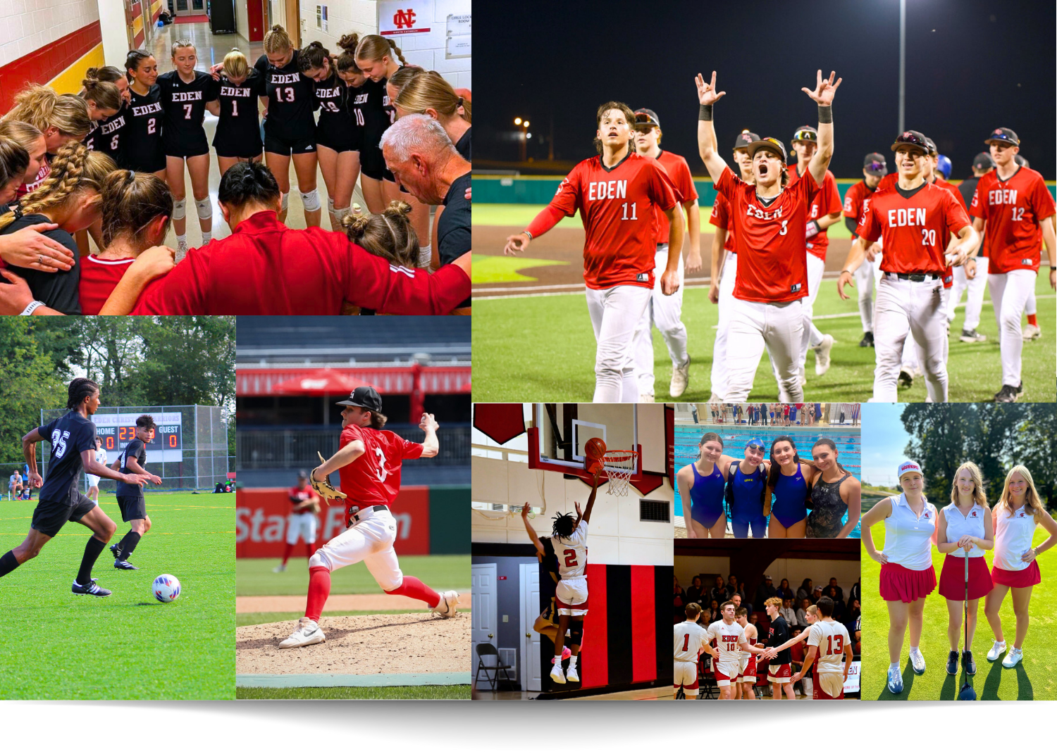 Eden offers a full range of athletic opportunities across all levels, 11 sports at the varsity and junior varsity level, 8 sports in middle school, and 3 programs for elementary students.